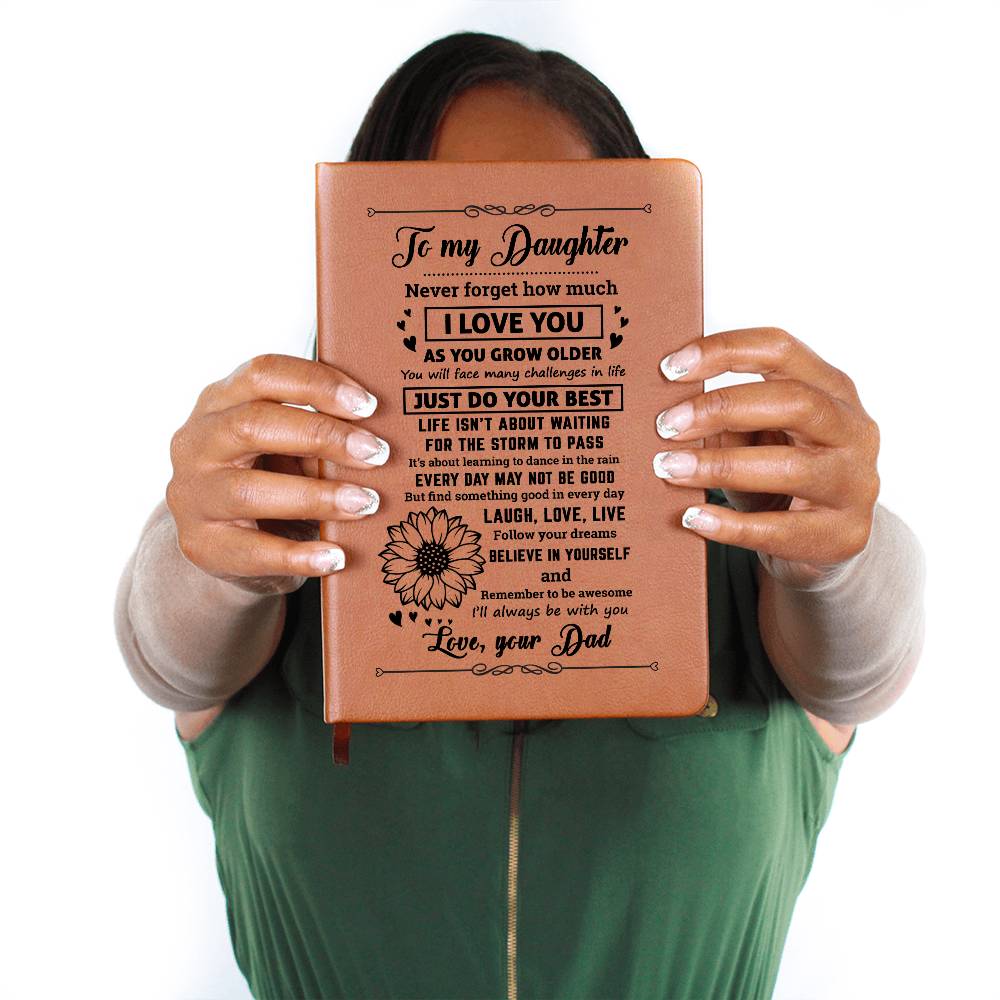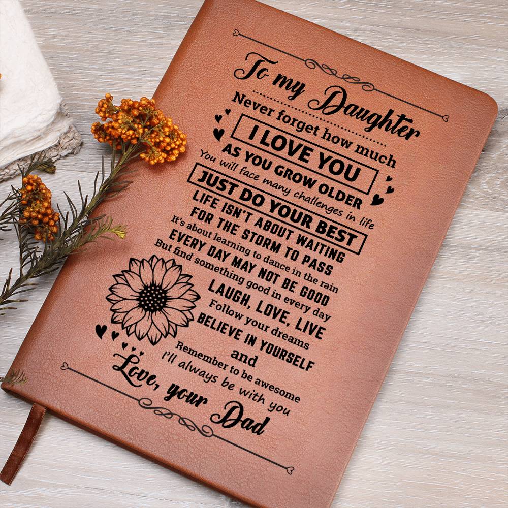 Daughter Gift From Dad, "Never Forget", Graphic Leather