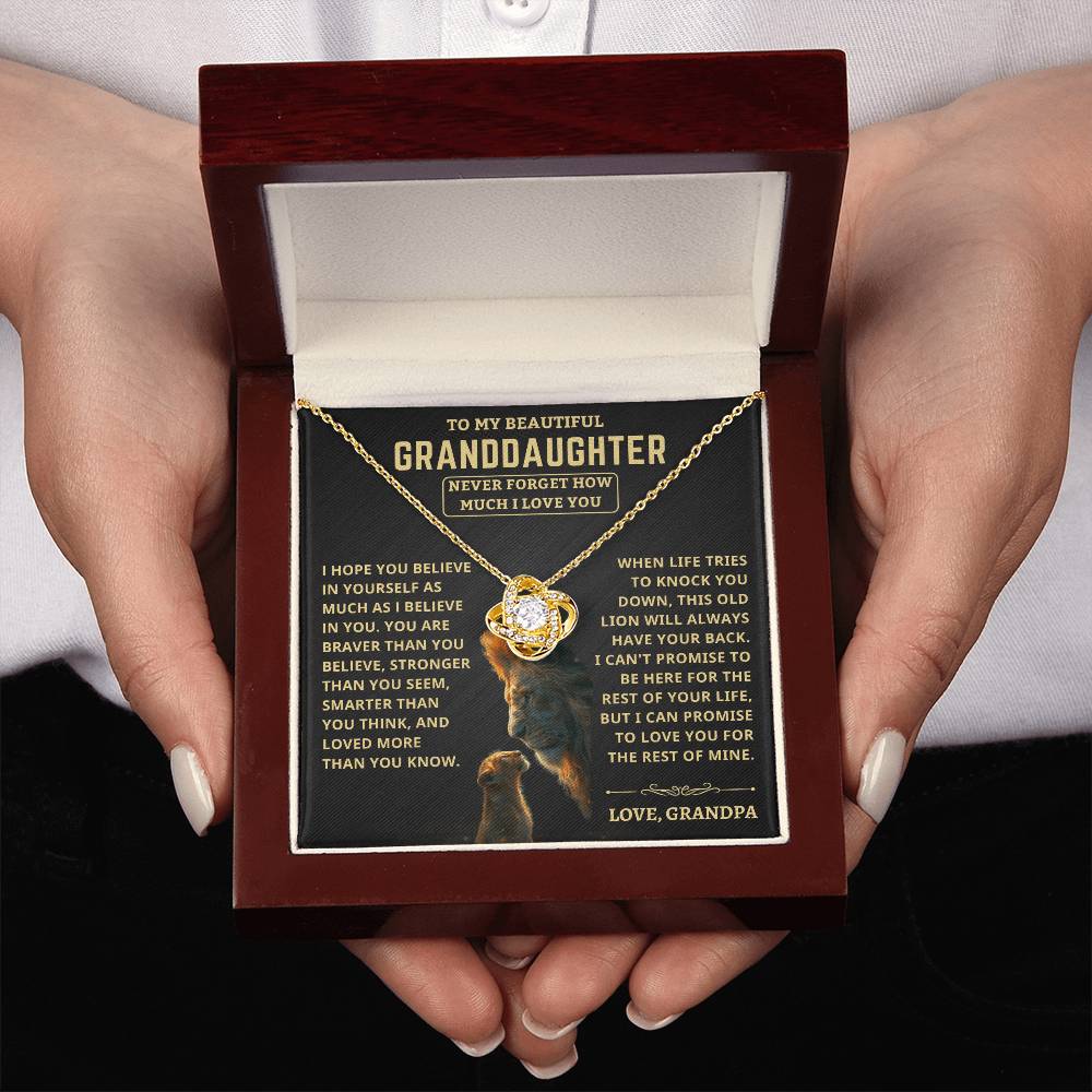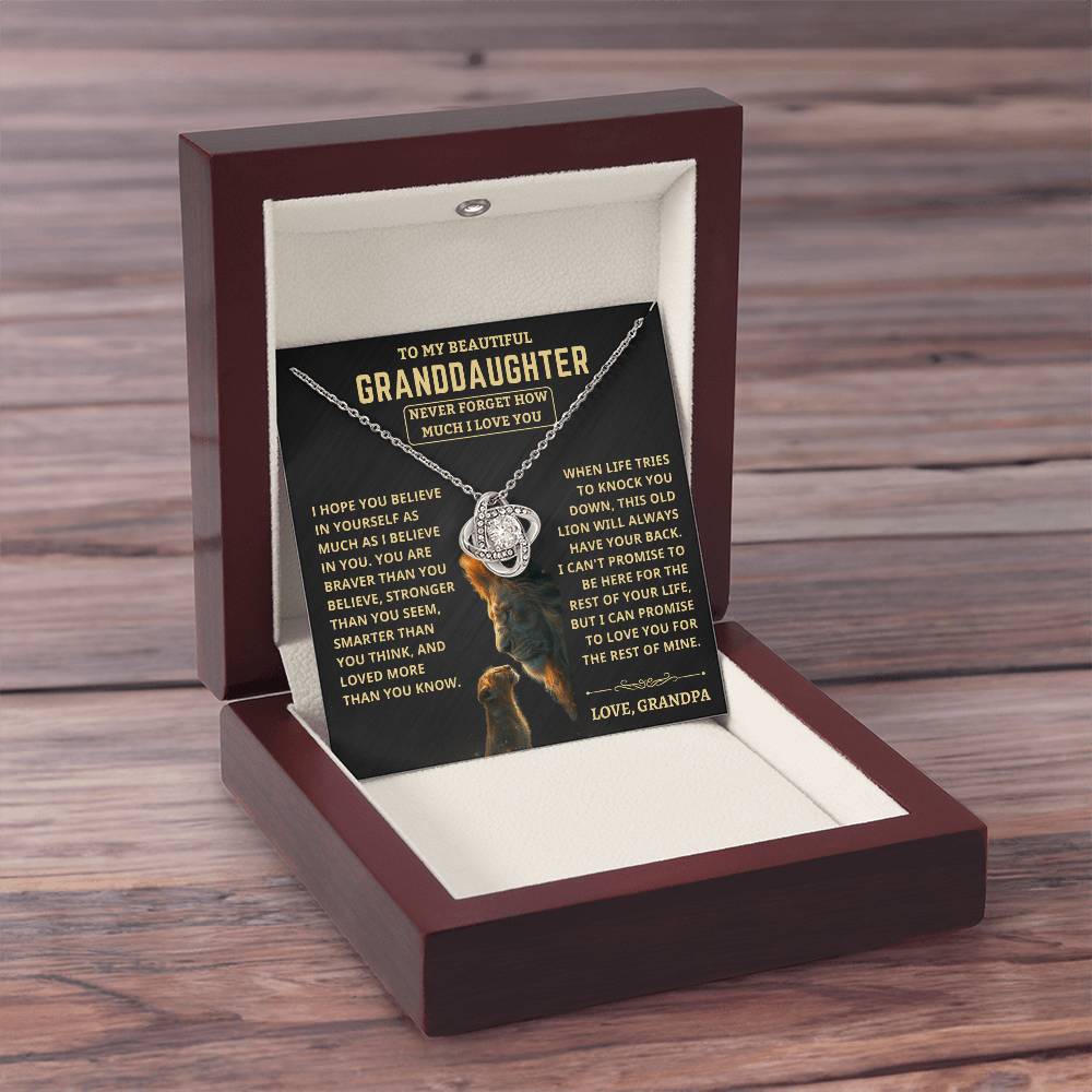 Imagine her reaction to receiving this beautiful Love Knot Necklace representing an unbreakable bond between Grandpa and Granddaughter.