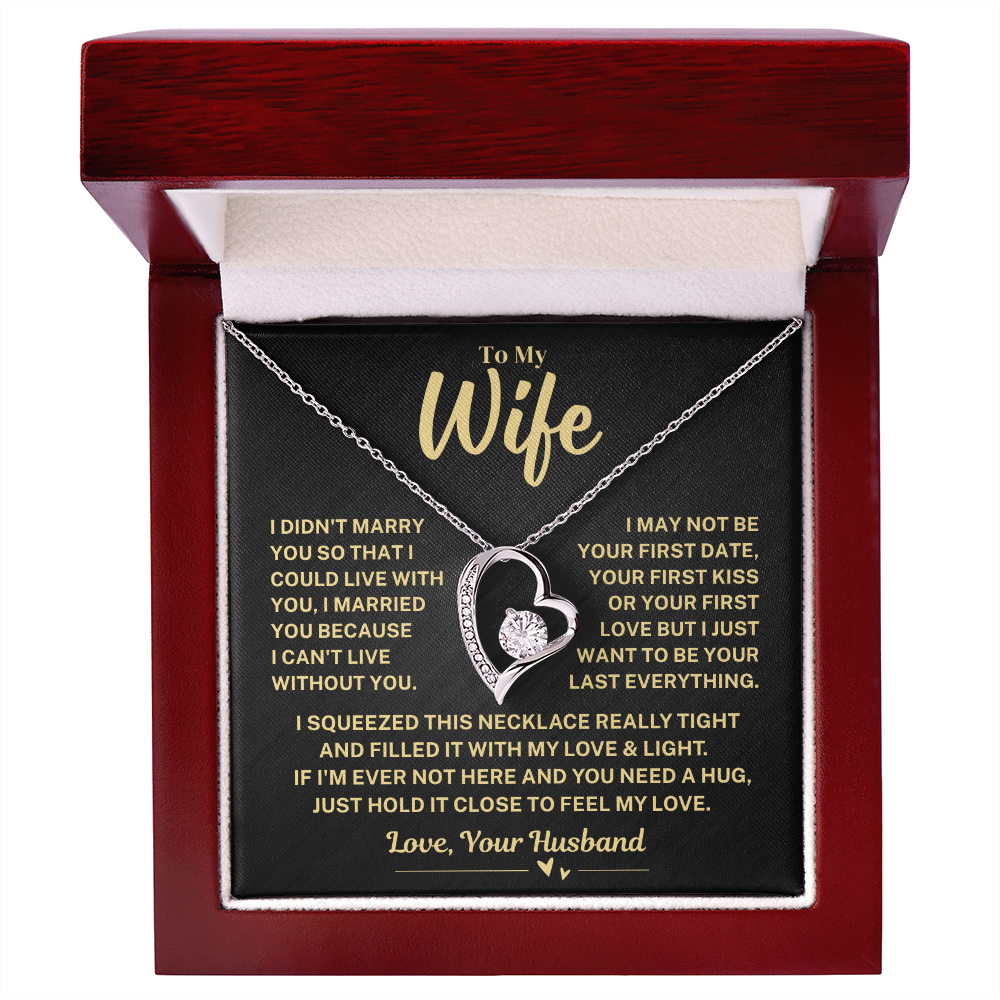 Heartfelt Message: I didn't marry you so that I could live with you, I married you because I can't live without you. I may not be your first date, your first kiss or your first love, but I just want to be your last everything. I squeezed this necklace really tight and filled it with my love and light. If ever you feel alone and need a hug, hold it close to feel my love.